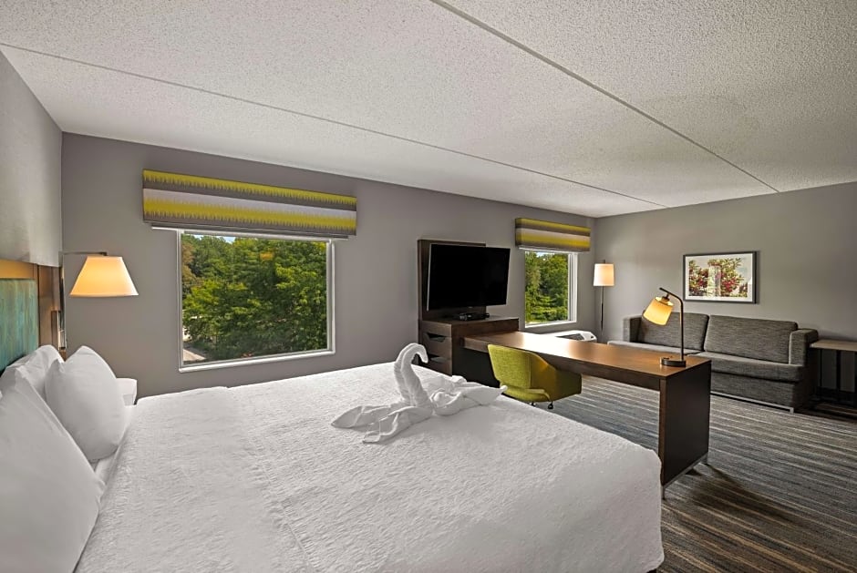 LCD HDTV, sofa bed, work space, coffeemaker, free WiFi Enjoy a comfortable stay in this spacious studio suite which features a clean and fresh Hampton bed®, a work space and a cozy sofa bed to accommodate extra guests. Work in comfort at the large desk area or stay connected with free WiFi. The bathroom offers guests soft towels and a spacious walk-in shower. An LCD TV with HD channels and a coffeemaker are included for your convenience.