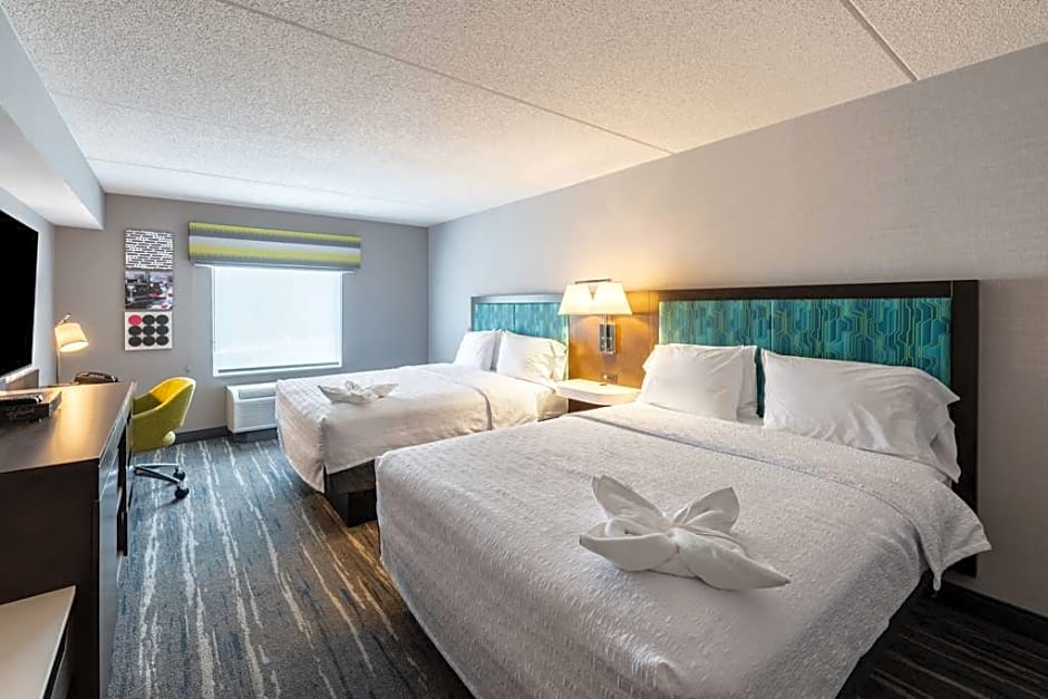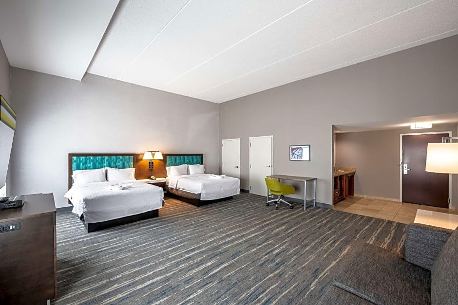 LCD HDTV, sofa bed, work space, coffeemaker, free WiFi Enjoy a comfortable stay in this spacious studio suite which features two clean and fresh Hampton beds®, a work space and a cozy sofa bed to accommodate extra guests. Work in comfort at the large desk area or stay connected with free WiFi. The bathroom offers guests soft towels and a spacious walk-in shower. An LCD TV with HD channels and a coffeemaker are included for your convenience.